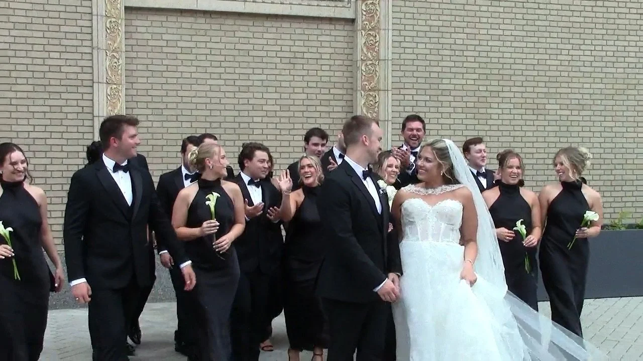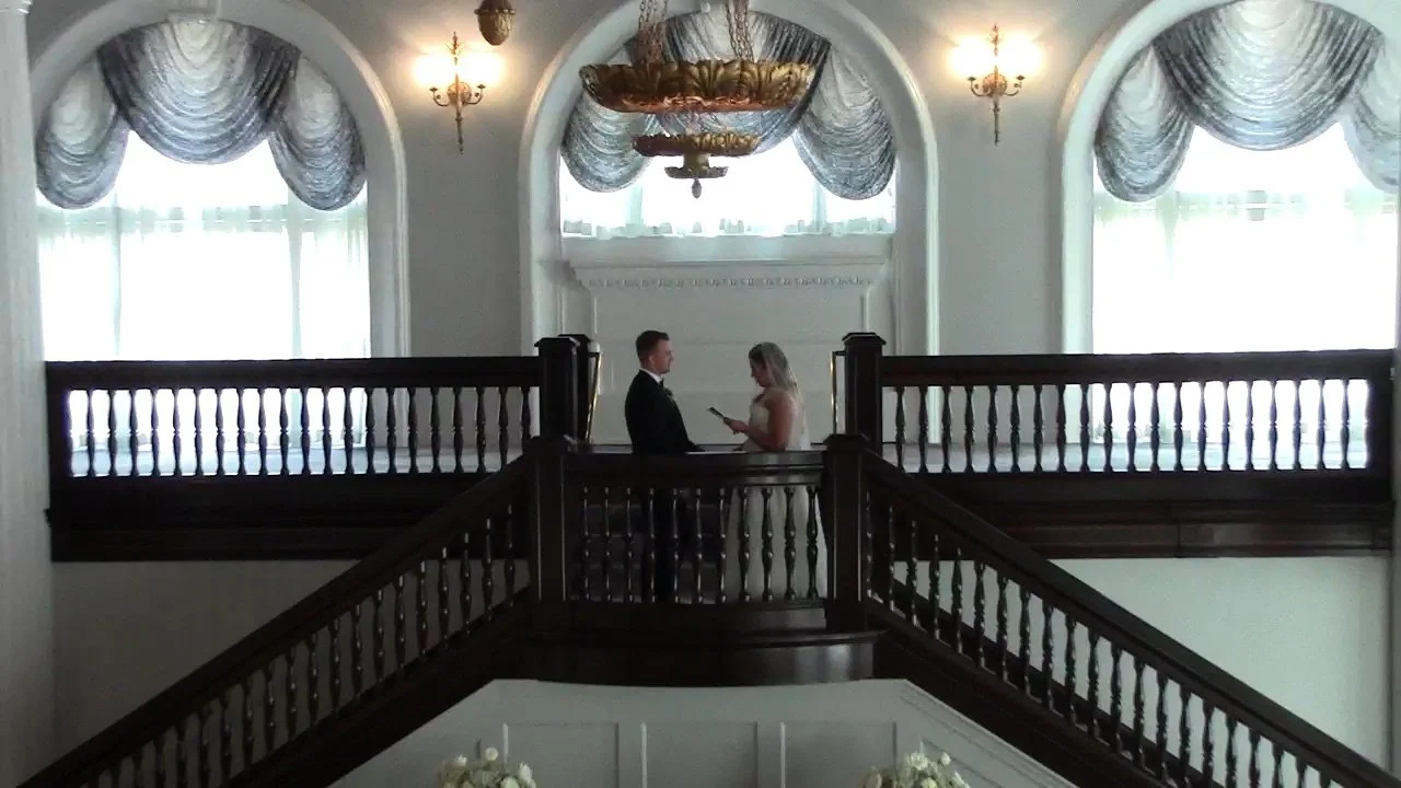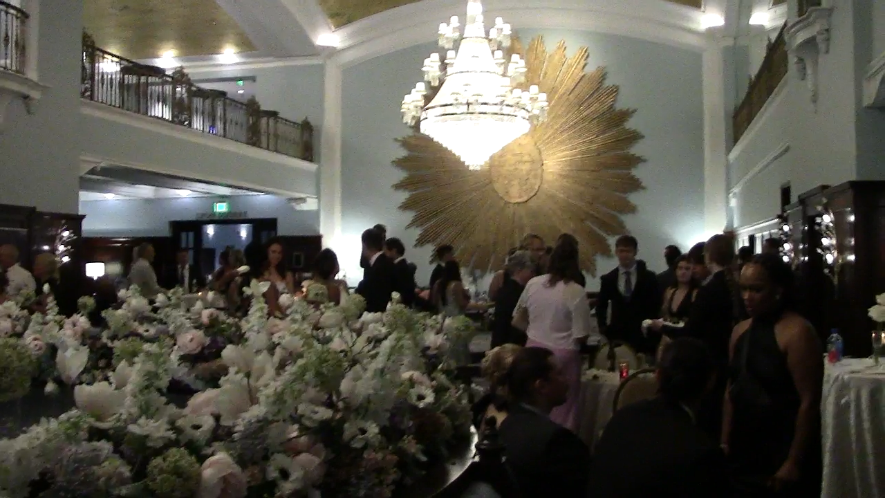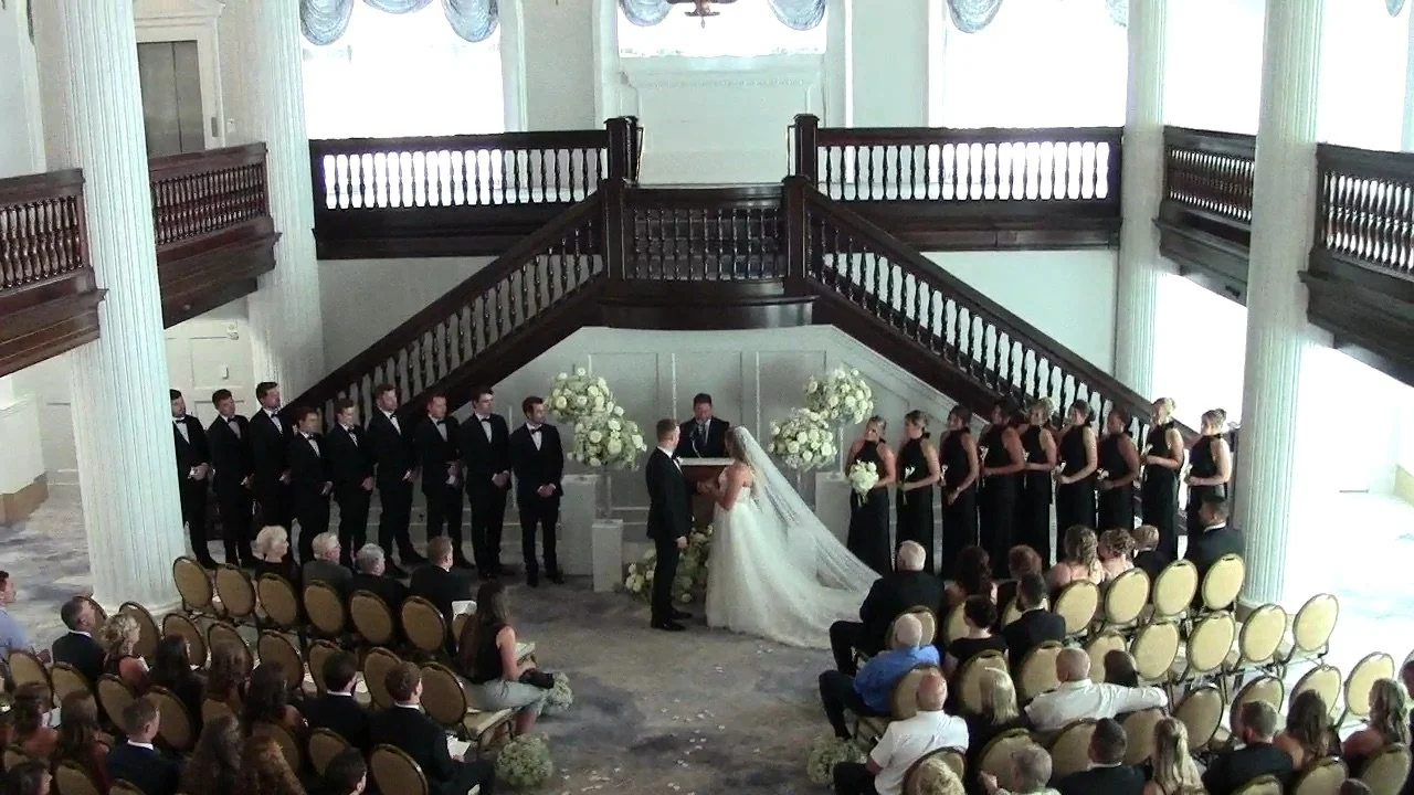 A sweeping camcorder shot of the ceremony from above, showcasing the Amway Grand Plaza's Imperial Ballrooms architecture.