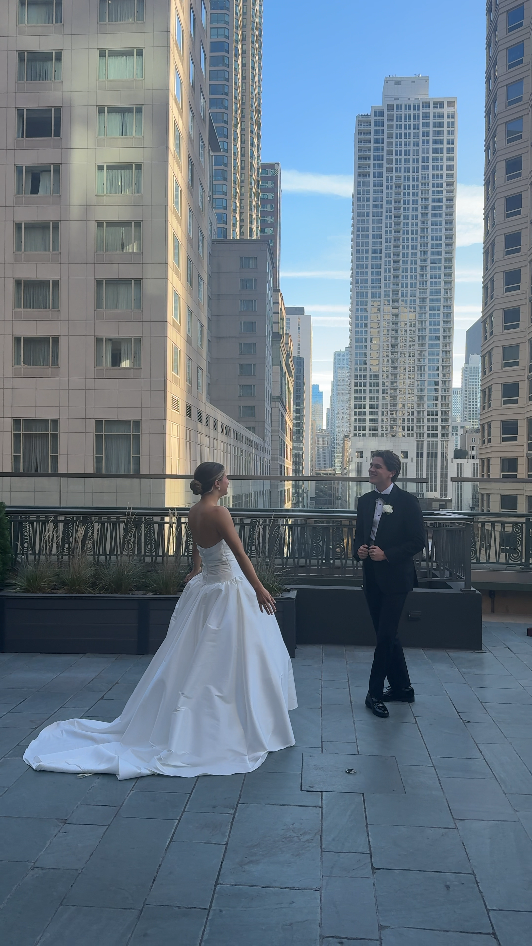 Imagine stepping onto the Park Hyatt’s private garden rooftop for your first look. Surrounded by lush greenery and framed by the Chicago skyline, this intimate setting creates a breathtaking backdrop for one of the most emotional moments of your day. A content creator captures the raw reactions—the laughter, the tears, and the whispers—so you can relive the magic long after the day ends.